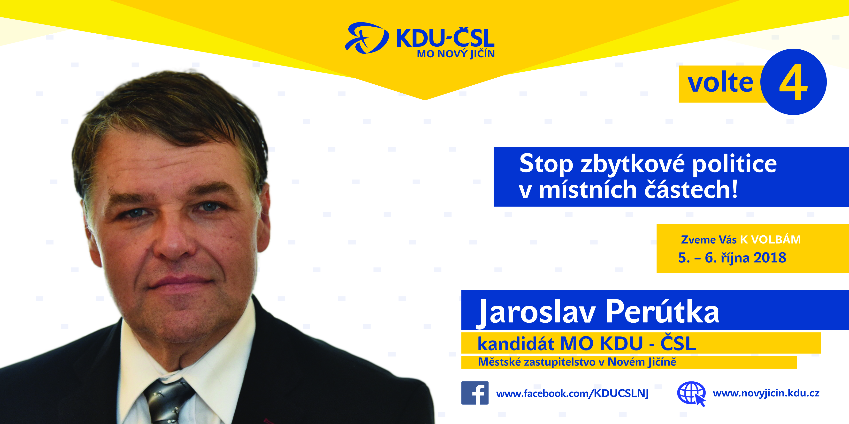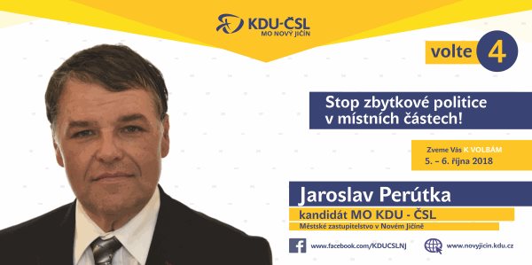 Vážení příznivci dnes bychom vám rádi představili místopřesedu MO KDU-ČSL Nový Jičín, předsedu osadního výboru v Žilině, muže číslo 2 na naši kandidátce pana Jaroslava Perútku.