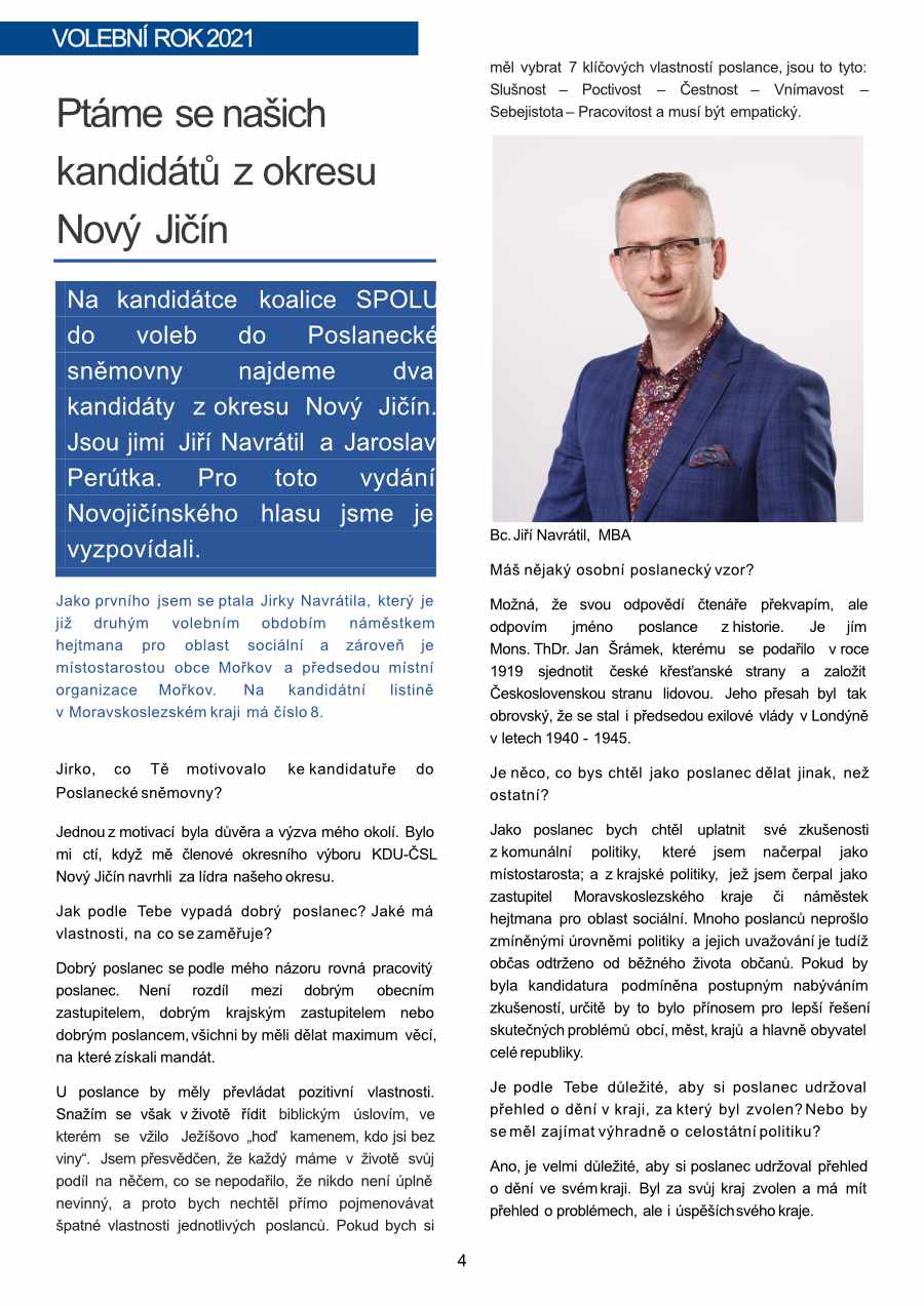 V dnešním příspěvku bychom vám rádi představili dva kandidáty do PS z našeho okresu. Dovolili jsme si použít materiál z posledního čísla Novojičínského Hlasu.